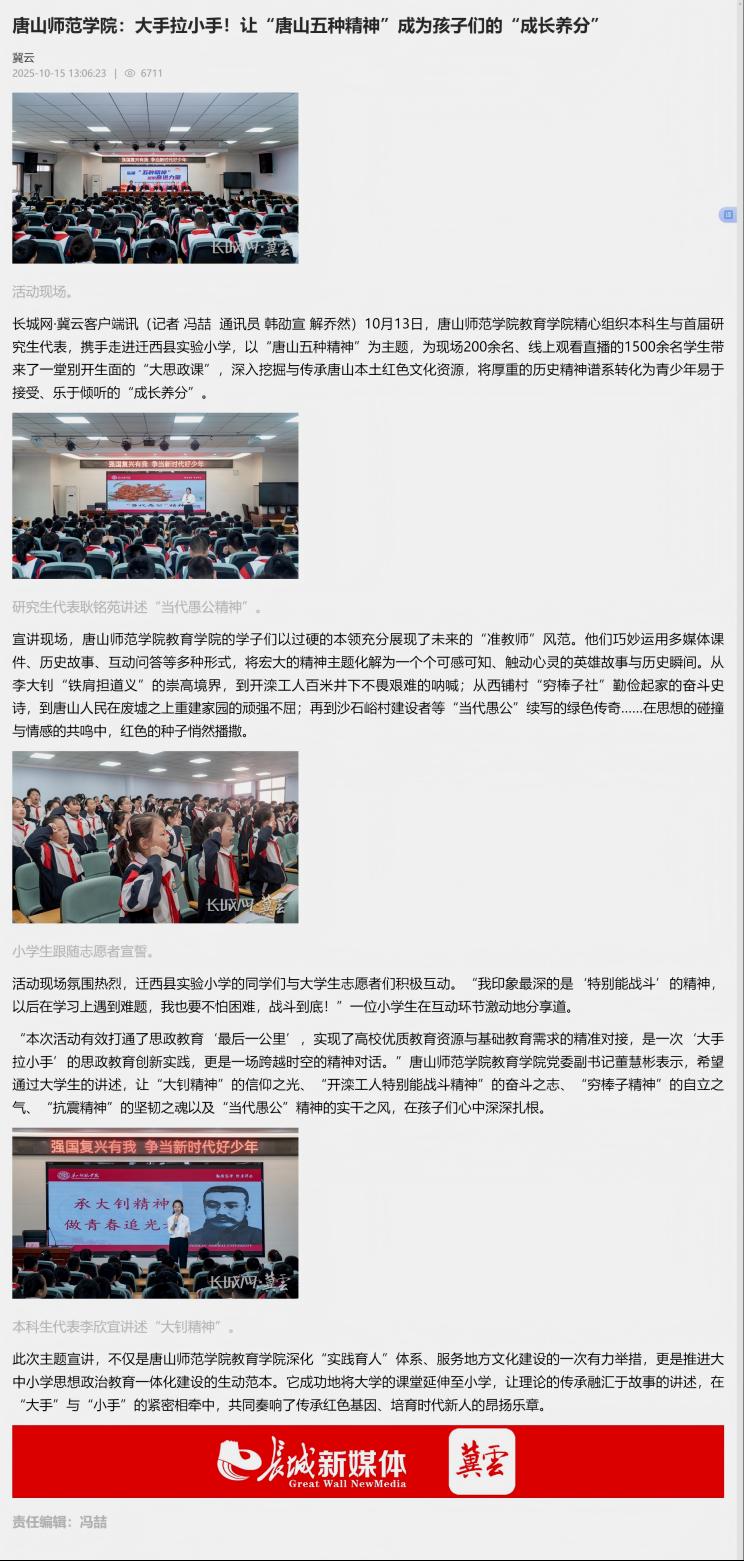 《冀云》—tcy8722太阳集团:大手拉小手!让“唐山五种精神”成为孩子们的“成长养分”